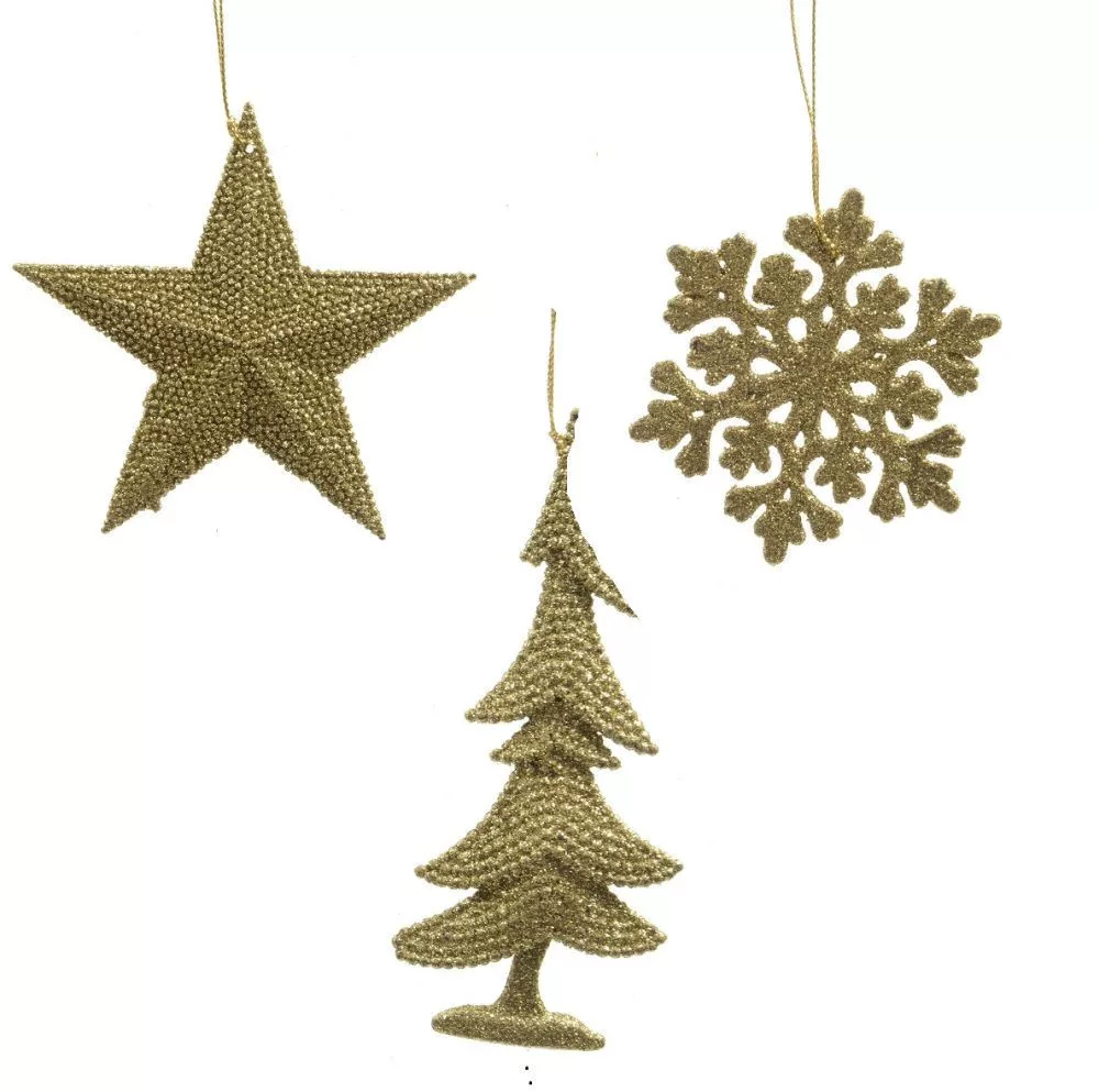 Akasztós karácsonyi dísz glitteres arany 10-15cm