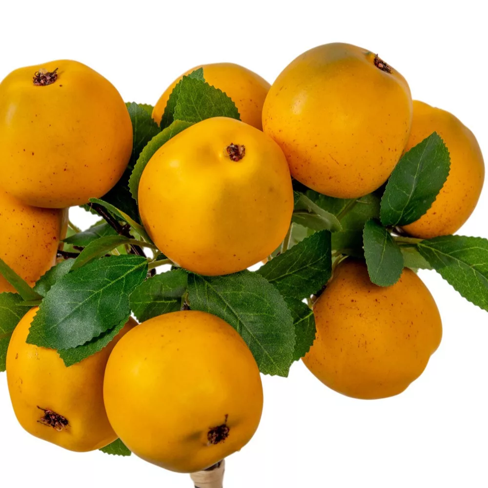 A gyümölcsös dekorációk sosem mennek ki a divatból, és ez a 32 cm-es sárga alma termés köteg pontosan azt a rusztikus eleganciát kínálja, amire egy hangulatos otthonnak szüksége van. Az élethű műgyümölcsök nagy előnye, hogy az év minden szakában a bőség és a természet közelségének érzetét keltik, anélkül, hogy aggódnod kellene a romlandóság miatt. Ez a kötegelt dísz a kreatív alkotók egyik kedvenc alapanyaga, hiszen dús felépítése miatt pillanatok alatt látványos fókuszt ad bármilyen dísznek.