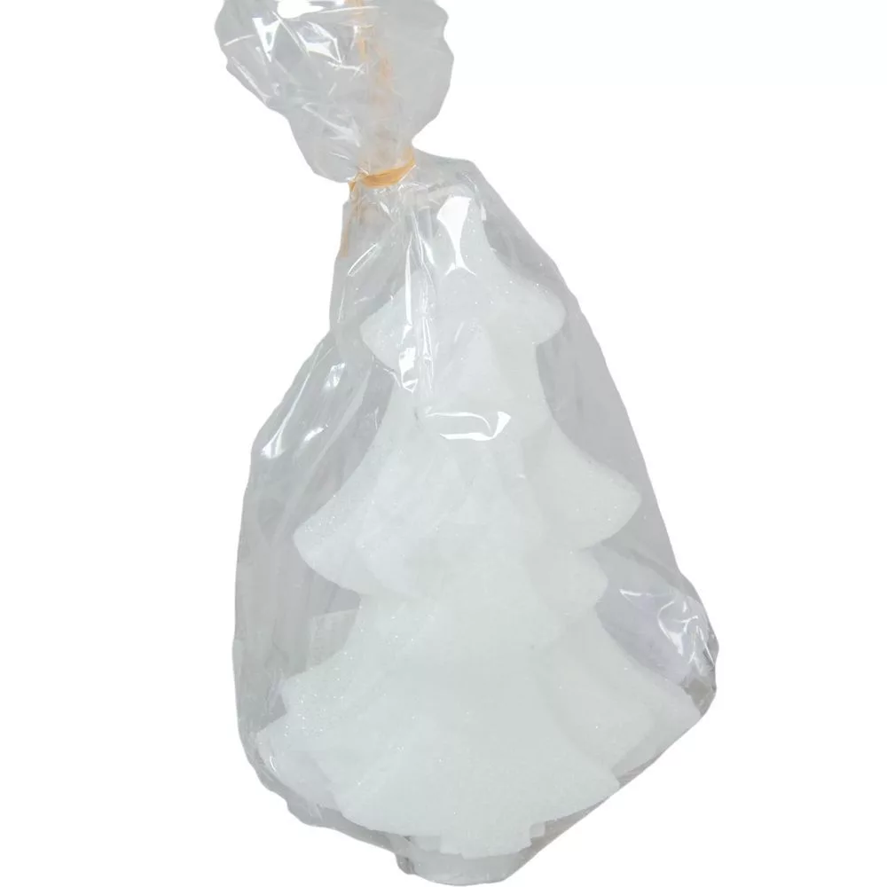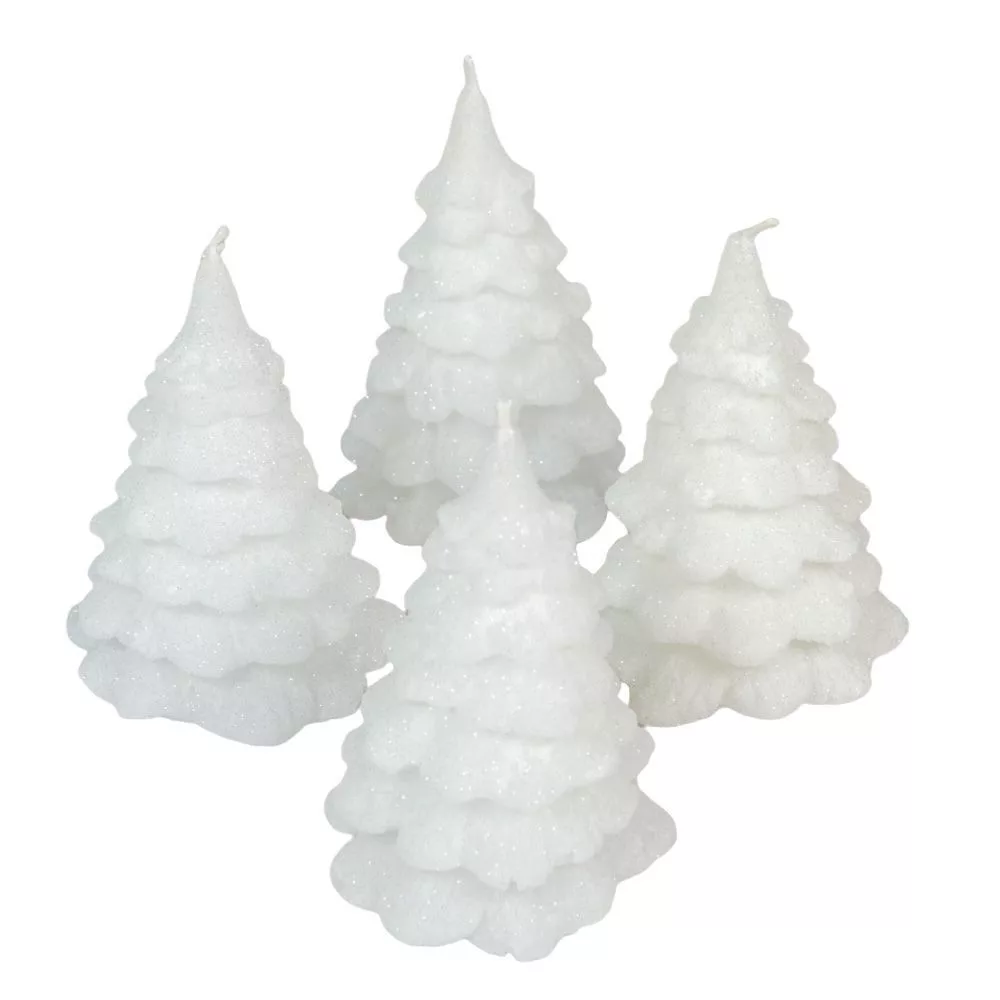 Bársony glitter fenyőfa gyertya 75x100mm fehér 4db/csom