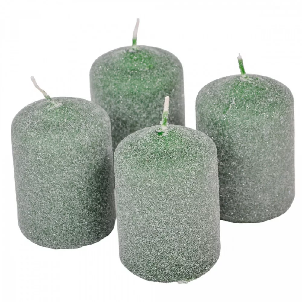 Bársony glitter henger gyertya 50x75mm új zöld 4db/csom (db ár)