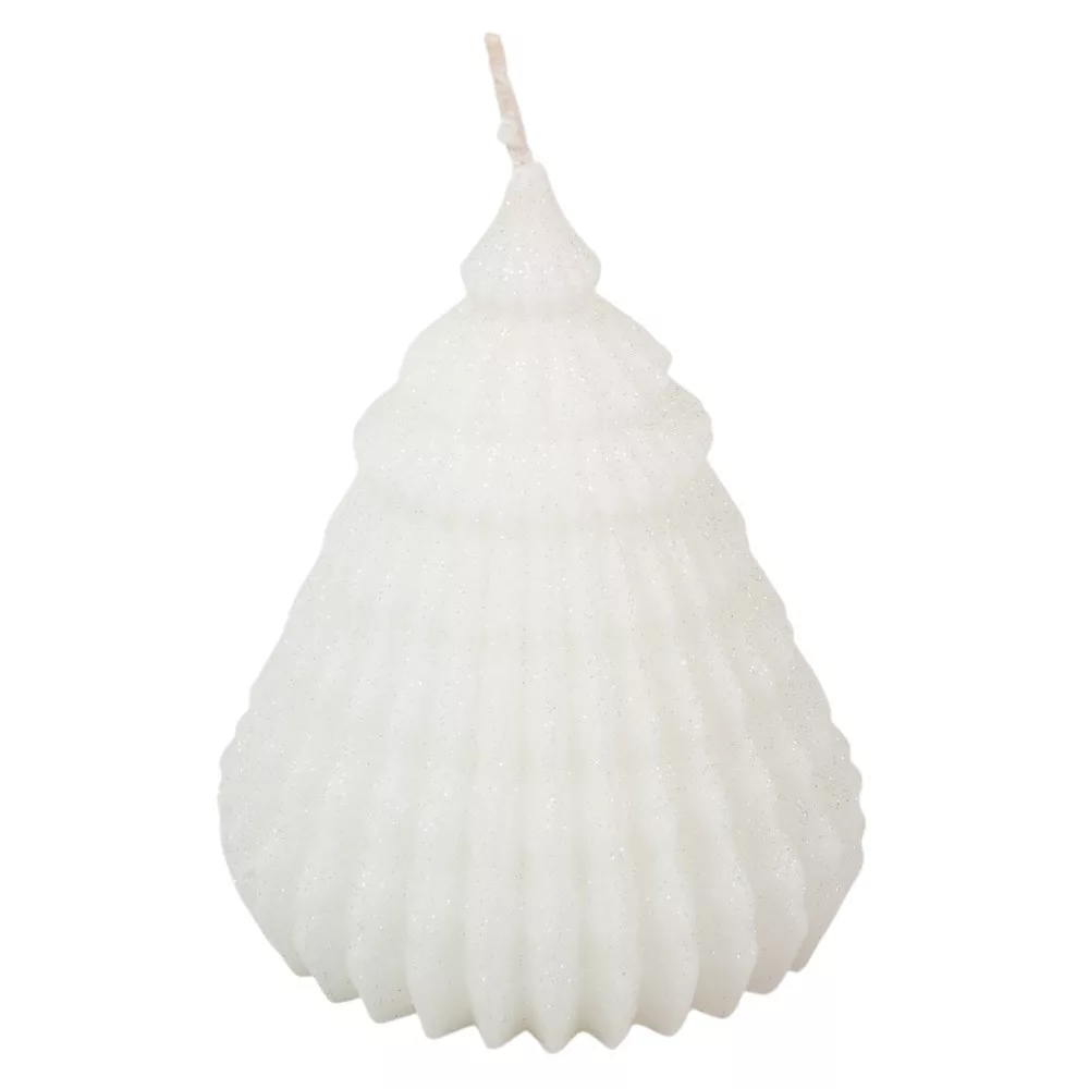 Bársony glitter origami fenyő gyertya 90x120mm fehér