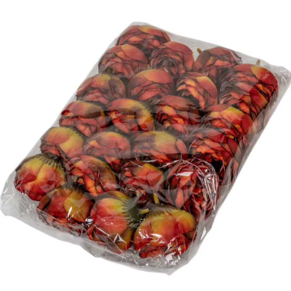 Miért érdemes ezt a cirmos bordó boglárka virágfejet választanod? A legnagyobb értéke a különleges színvilágában és a tömött, gömbölyded formájában rejlik: az 5,5 cm-es méret tökéletes térkitöltő, miközben izgalmas hangsúlyt ad a kompozíciónak. Szépen mutat a webáruházunkban kapható fekete-arany papírdobozokkal, krémszínű rózsákkal vagy akár natúr kenderzsineggel is a rusztikus hatás érdekében. Mivel a szirmok minőségi selyemből készültek, a tapintásuk lágy marad, és jól bírják a különféle rögzítési folyamatokat. A cirmos minta miatt remekül kombinálható egyszínű krém vagy bordó virágokkal is, így minden klasszikus és elegáns enteriőrbe jól illeszkedik. A virágfej lapos hátoldala stabil tartást garantál még a függőleges felületeken is.