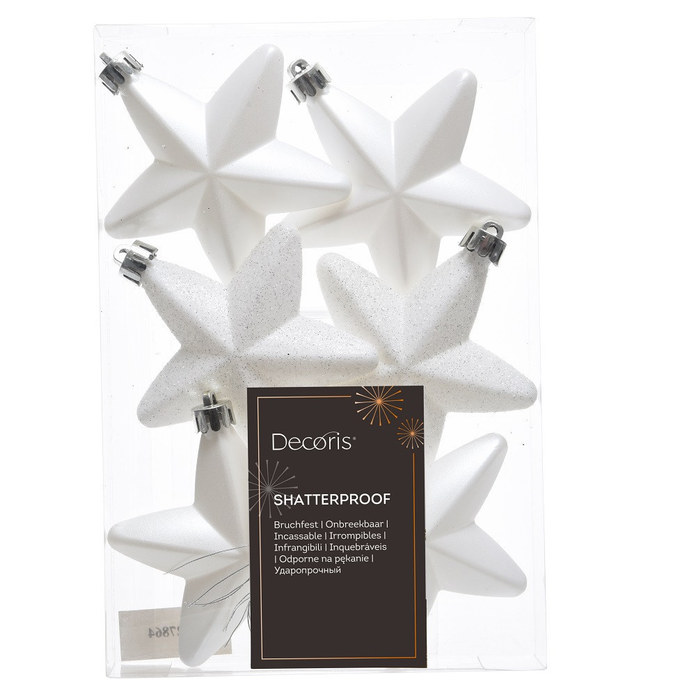 A csillag az ünnepi időszak egyik legfontosabb jelképe, és ez a 6 darabos fehér műanyag szett segít abban, hogy ezt a szimbolikát stílusosan vidd be az otthonodba. A 7,5 cm-es méret éppen ideális: elég nagy ahhoz, hogy észrevehető legyen a fenyőágak között, de nem nehezíti el a vékonyabb gallyakat sem. A fehér szín a tisztaságot és a téli táj szépségét idézi, így azonnal meghitté teszi a környezetét.