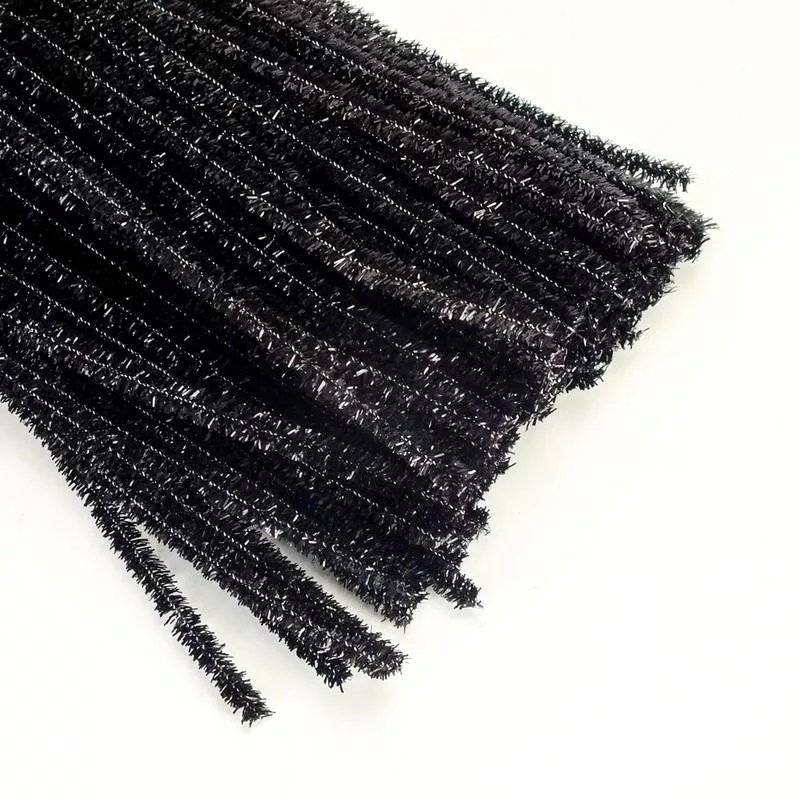 Csillámos zsenília drót - fekete 100db/cs