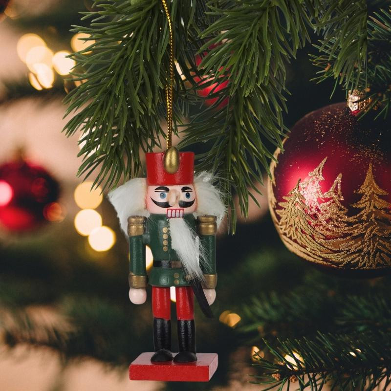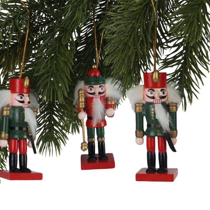 Felakasztható diótörő figurák karácsonyi dekorációkhoz. A termék fából van és felakasztható fenyőfára is.