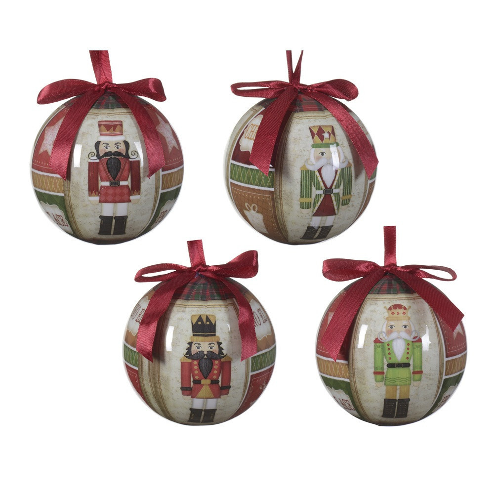 Ezek a diótörő mintás karácsonyi gömbök a hagyományos ünnepi stílus igazi képviselői.
