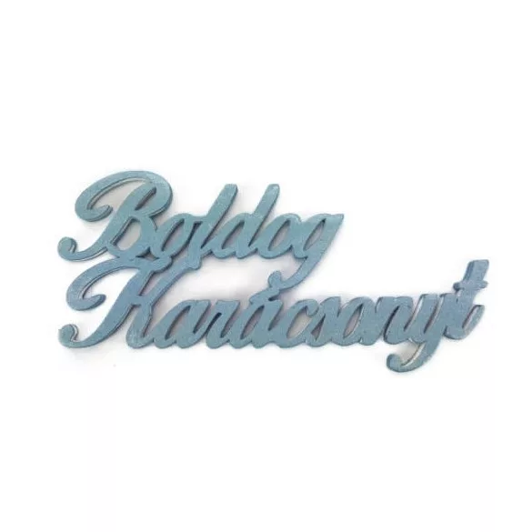 Fa felirat "Boldog Karácsonyt" 15cm x 7 cm - kékezüst