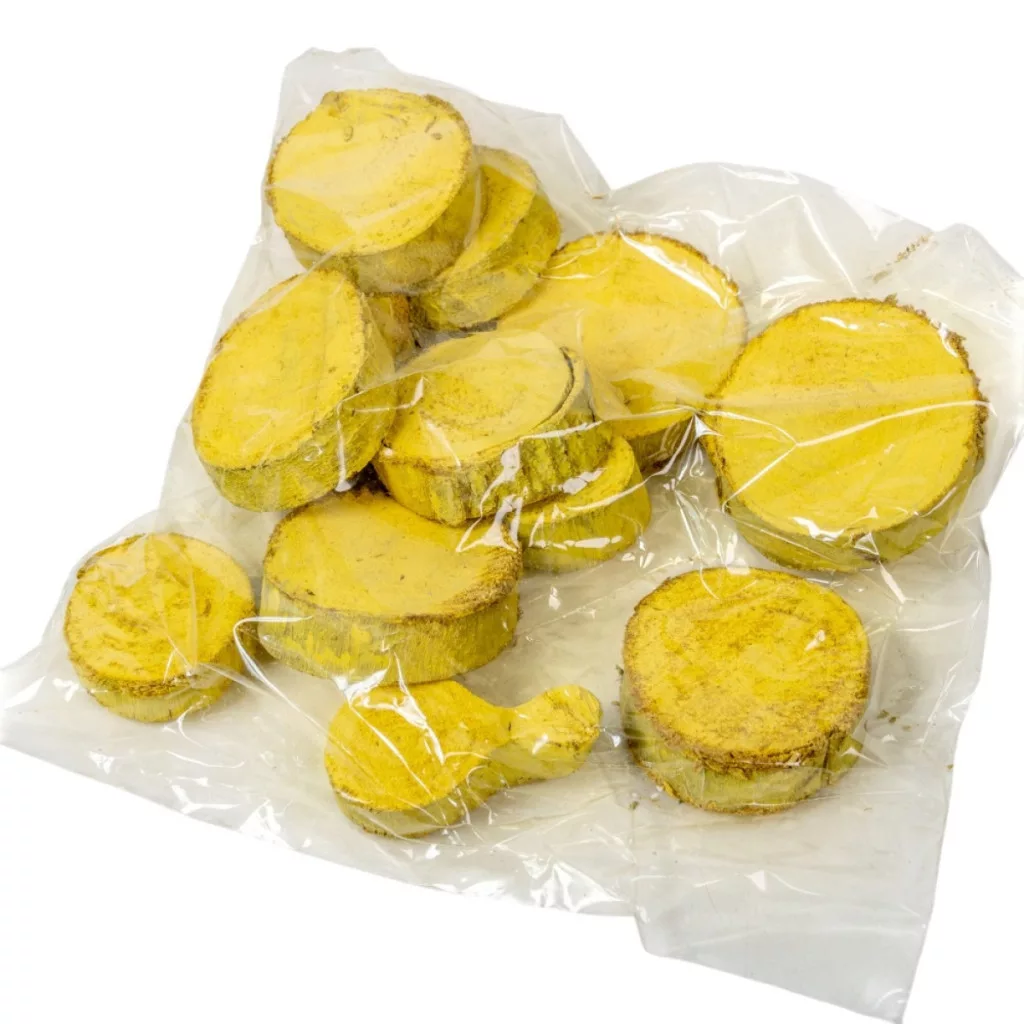 Fa szelet 1cm×3-9cm falfestékes sárga 20dkg/csom
