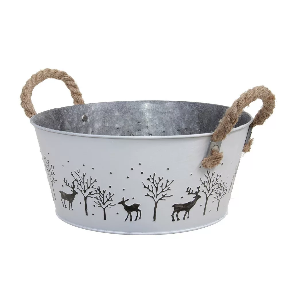Fém kaspó kötél füllel szarvas mintás D25cm M11cm