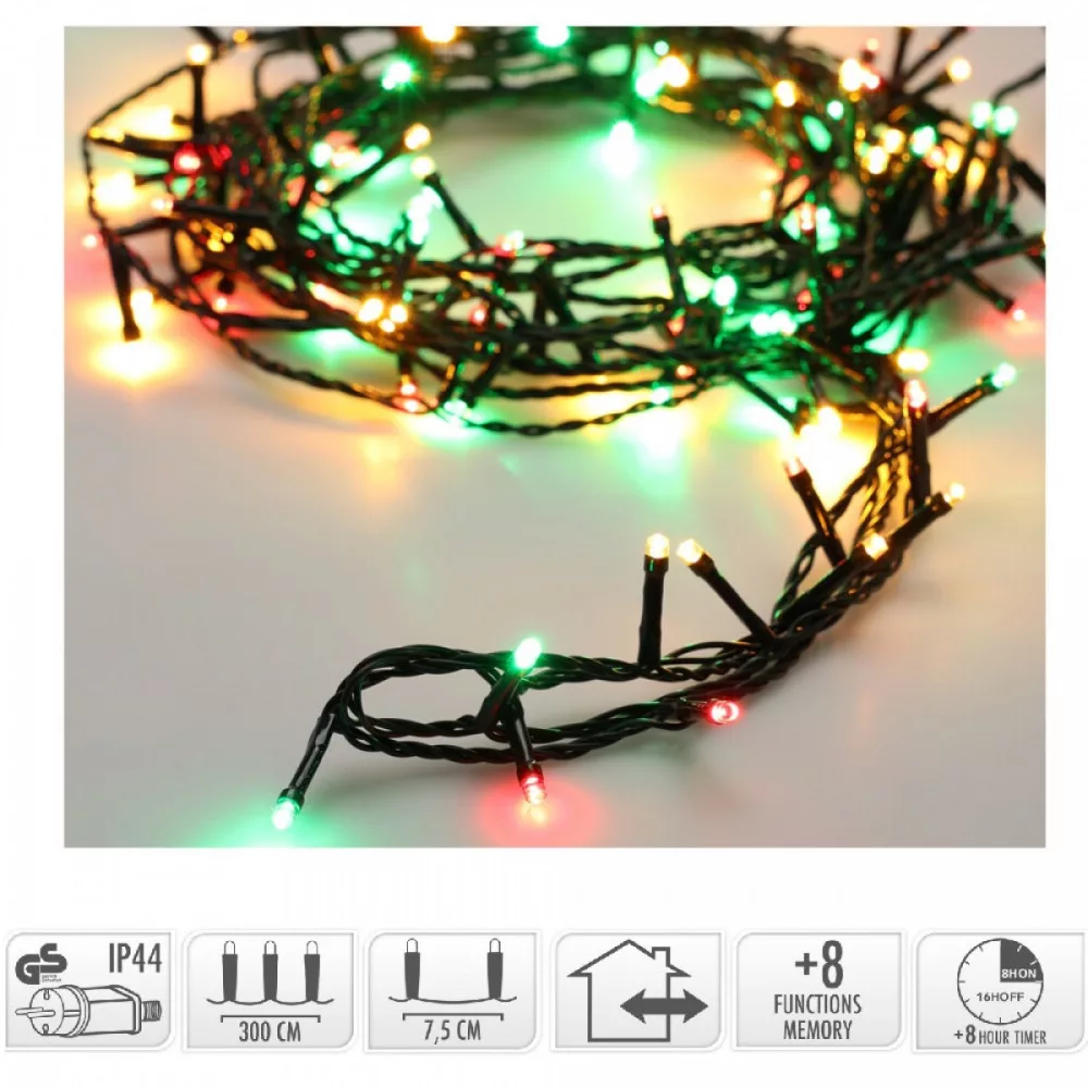 Fényfüzér 180 LED-es időzítős programos adapteres piros-meleg-zöld