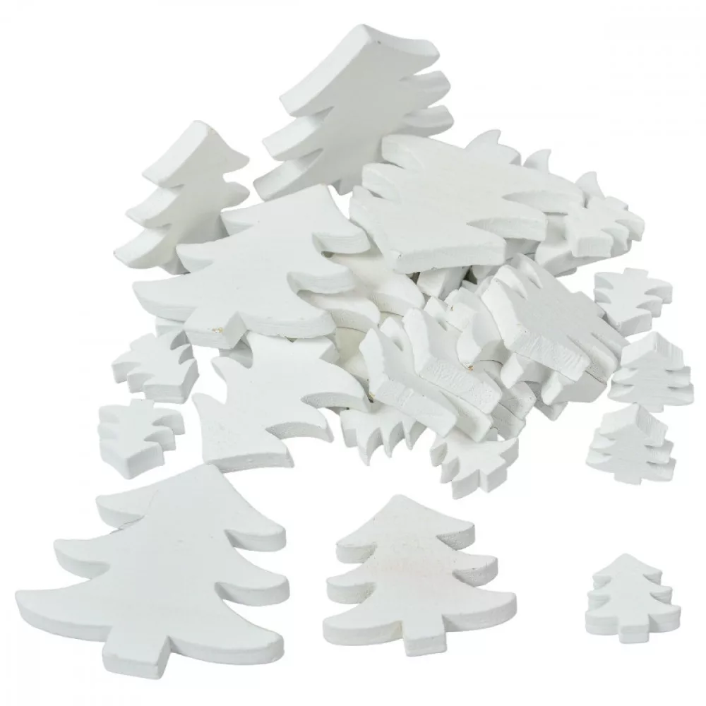 A 30 darabos fenyőfa figura szett természetes fa anyagból készült, fehérre festett felületével elegáns, mégis meghitt hangulatot áraszt.