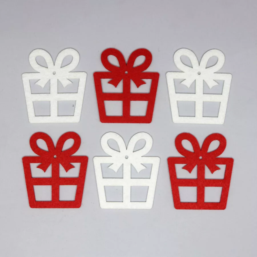Varrható, ragasztható filc figura. Használható önálló dekorációnak, de rögzíthetjük más textil tárgyon is. Rögzíthetjök hungarocell gömbre, amit előztte bevontunk például textillel, vagy festettünk egy alap színt neki. Felvarrható, ragasztható kiegészítőként karácsonyi textilből készült képekre.