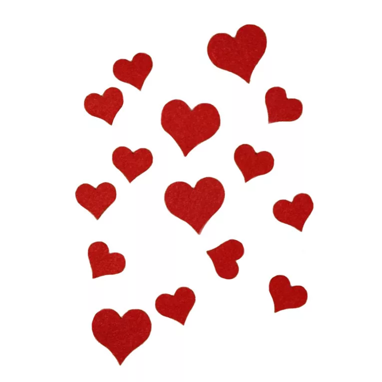 Filcfigura - Szív piros vegyes méret 16db/csomag