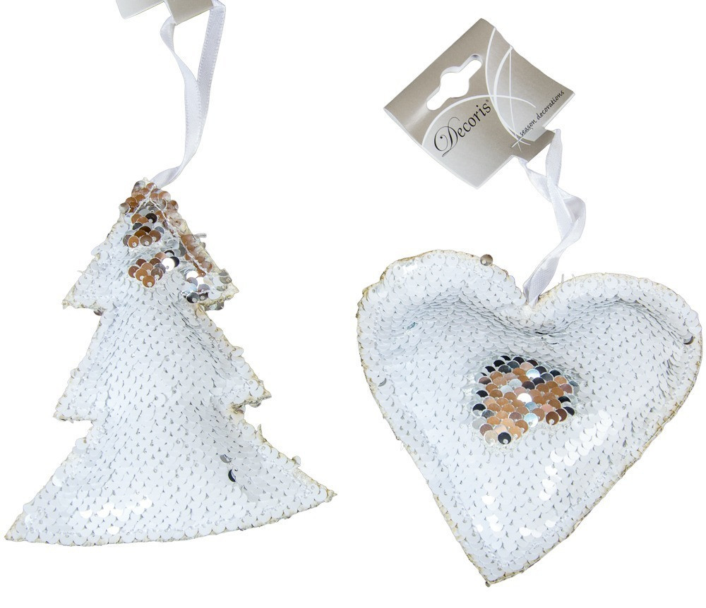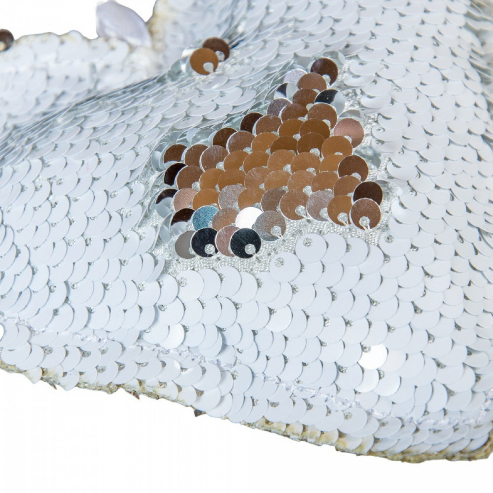 A könnyű textil alap és a fényes flitterborítás kombinációja harmonikusan illeszkedik a glamour, ezüst-fehér vagy skandináv stílusú karácsonyi enteriőrökbe.