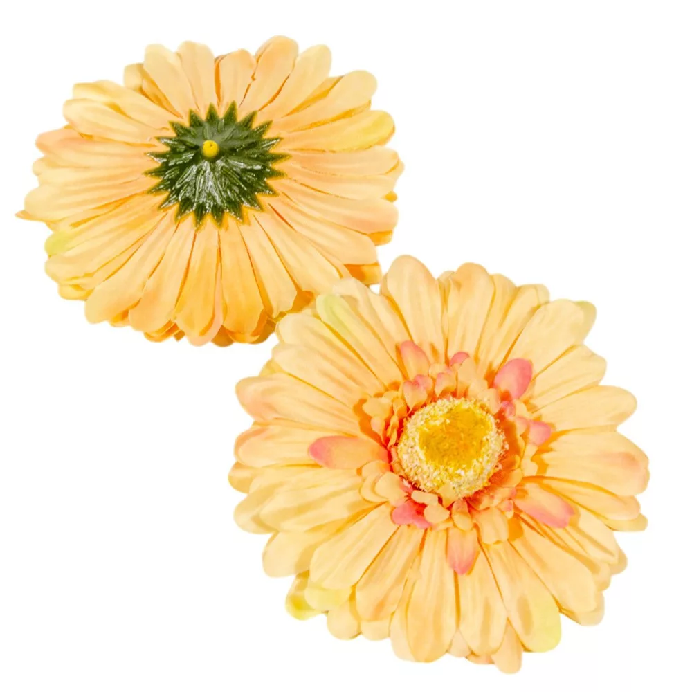 Ez a barack-rózsaszín gerbera virágfej jól kombinálható más dekorációs alapanyagokkal, például barack virágtasakokkal, fehér dália csokrokkal vagy különféle szatén szalagokkal is. Ha szereted a tartós, látványos és kreatívan variálható kiegészítőket, ez a 12 cm-es virágfej hasznos eleme lesz a készletednek. Válaszd a minőségi dekoráció és a virágok szeretetének élményét! Tedd a kosaradba, és alkoss belőle valami egyedit!