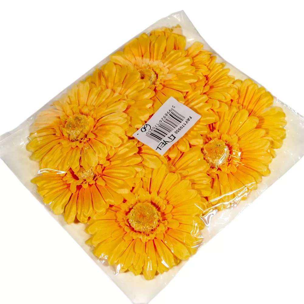 Ez a világossárga gerbera virágfej jól kombinálható más dekorációs alapanyagokkal, például zöld virágmintás virágtasakokkal, fehér dália csokrokkal vagy különféle szatén szalagokkal is. Ha szereted a tartós, látványos és kreatívan variálható kiegészítőket, ez a 12 cm-es virágfej hasznos eleme lesz a készletednek. Válaszd a minőségi dekoráció és a virágok szeretetének élményét! Tedd a kosaradba, és alkoss belőle valami napsütötte különlegességet!