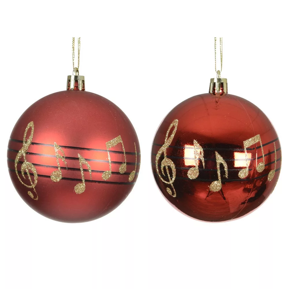 Hangjegy mintás műanyag gömb piros 8cm