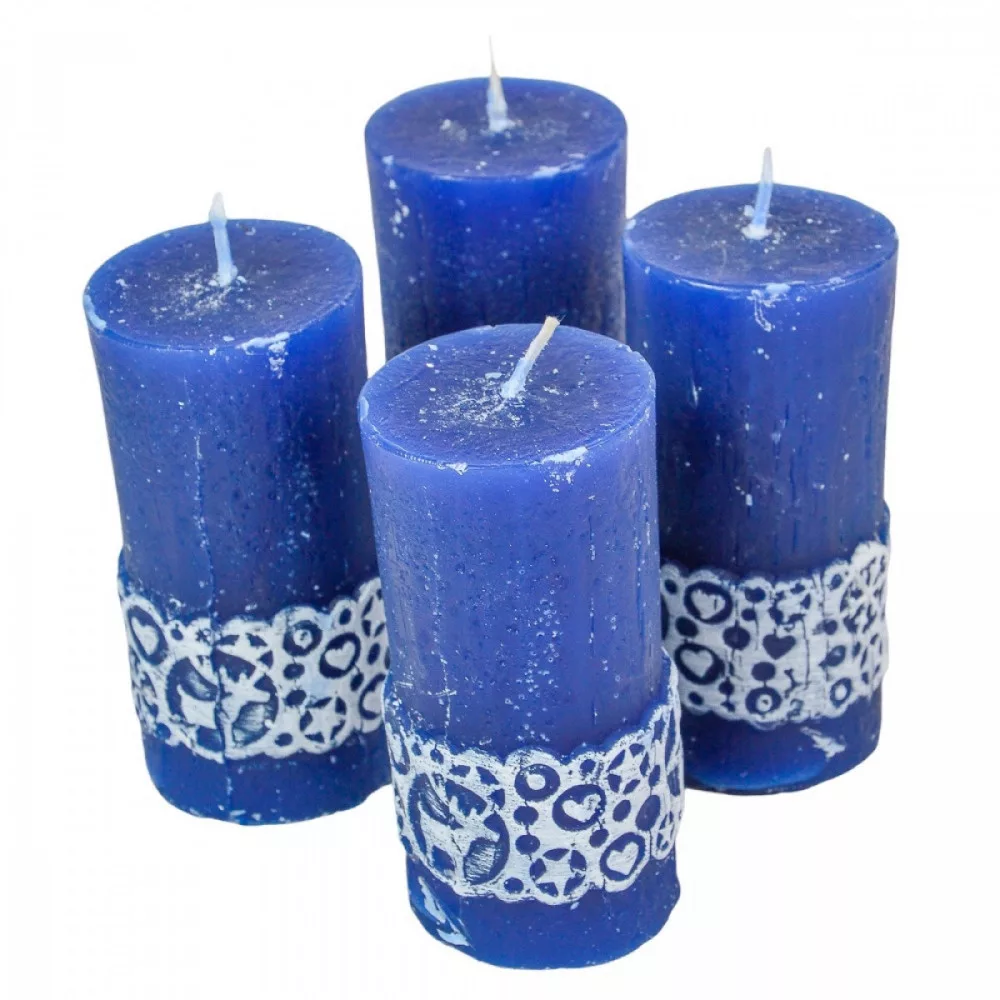 Kőhatású dekorcsíkos henger gyertya 45x100mm sötétkék
