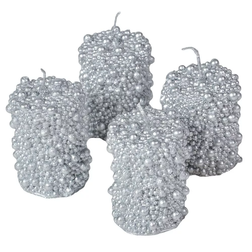 Kontúrozott gyöngyös henger gyertya 60x75mm ezüst
