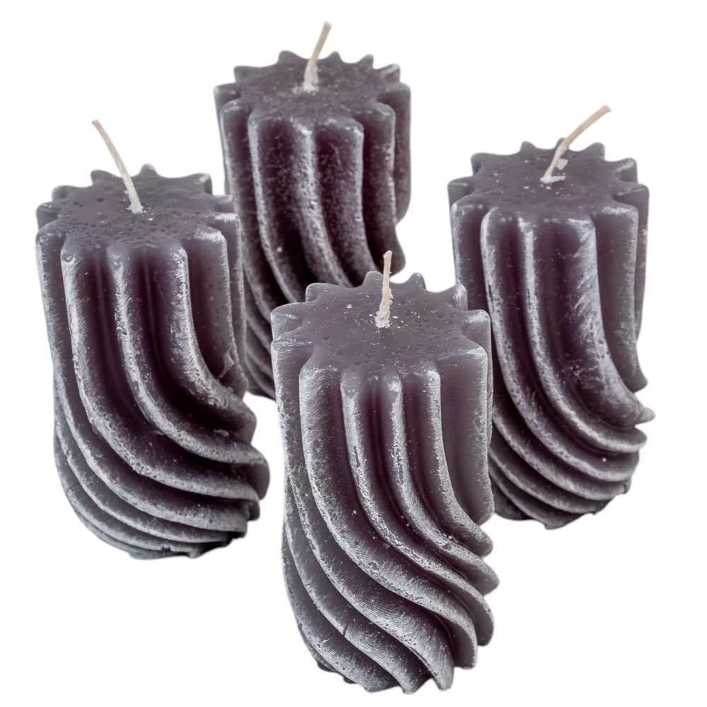 Kontúrozott hullámos henger gyertya 55x95mm szürke 4db/csom (db ár)