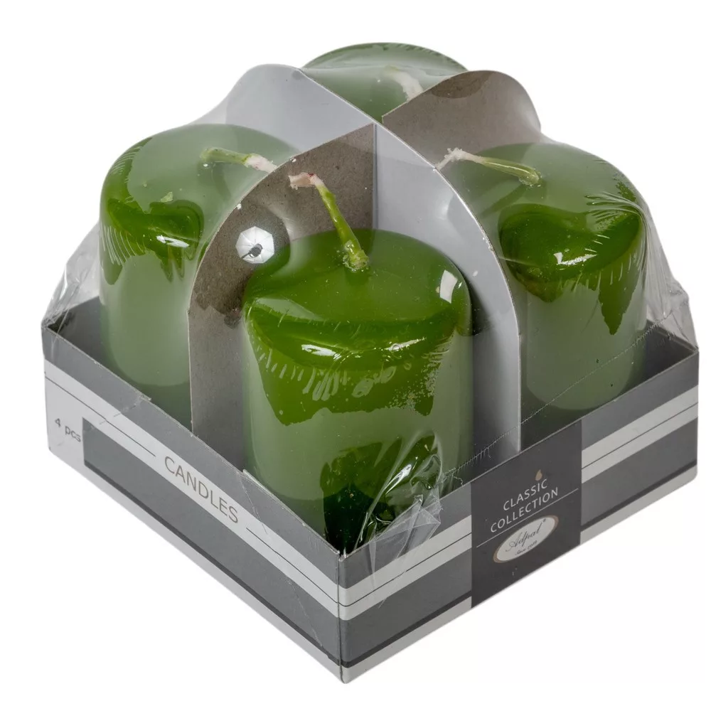 Lakkozott adventi gyertya 70x40mm oliva 4db/csom (db ár)