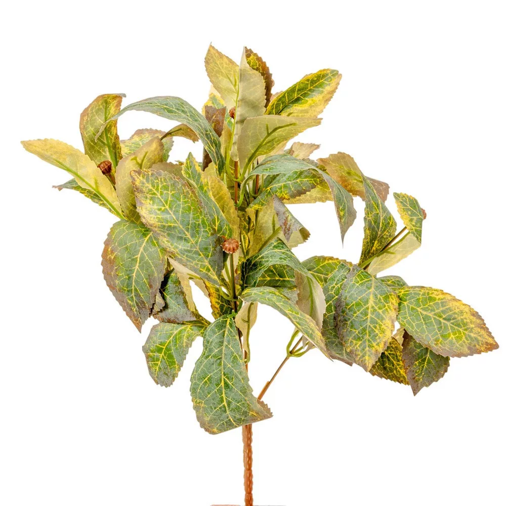 Ez a 38 cm magas, 6 ágra osztott leveles bokor tökéletes kiegészítő minden kreatív alkotáshoz. Tartós, formáját jól tartó anyagból készült, így hosszú távon is megőrzi esztétikus megjelenését. A levelek finom erezete és árnyalatai élethű hatást keltenek, így kiválóan illik natúr, őszi vagy karácsonyi díszekhez is. Használhatod önmagában vázába téve, koszorúalapba illesztve, vagy más virágokkal kombinálva – mindig harmonikus, természetes összhatást biztosít.