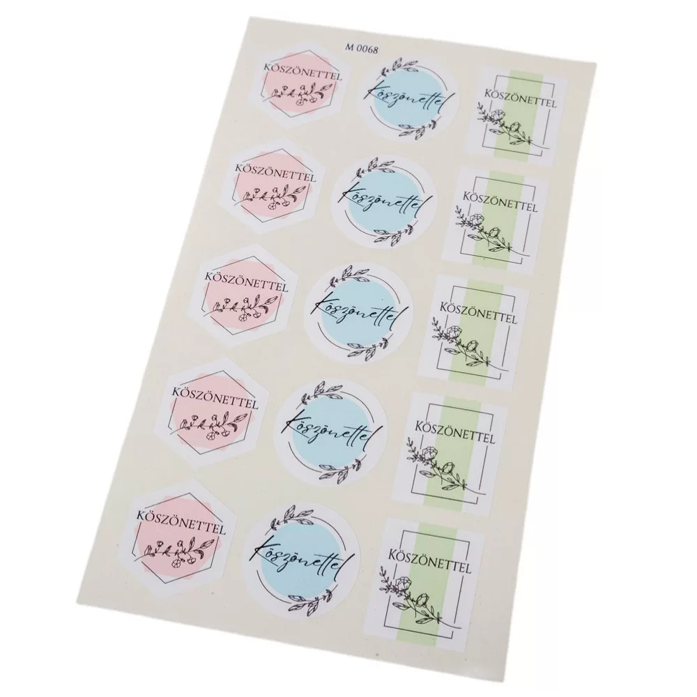 A legnagyobb értéke az azonnali, esztétikus díszítőerejében rejlik: a 15 darabos ív bőséges mennyiséget biztosít a kisebb rendezvényekhez vagy csomagolási feladatokhoz. A pasztell tónusok fantasztikusan harmonizálnak a webáruházunkban kapható szatén szalagokkal, de remekül mutatnak a nálunk elérhető tojás formájú papírdobozokon is. Mivel minőségi nyomtatással készült, a színek tiszták és tartósak, nem maszatolódnak el használat közben. A matricák könnyen lehúzhatók az ívről, így a csomagolás folyamata gyors és örömteli marad.