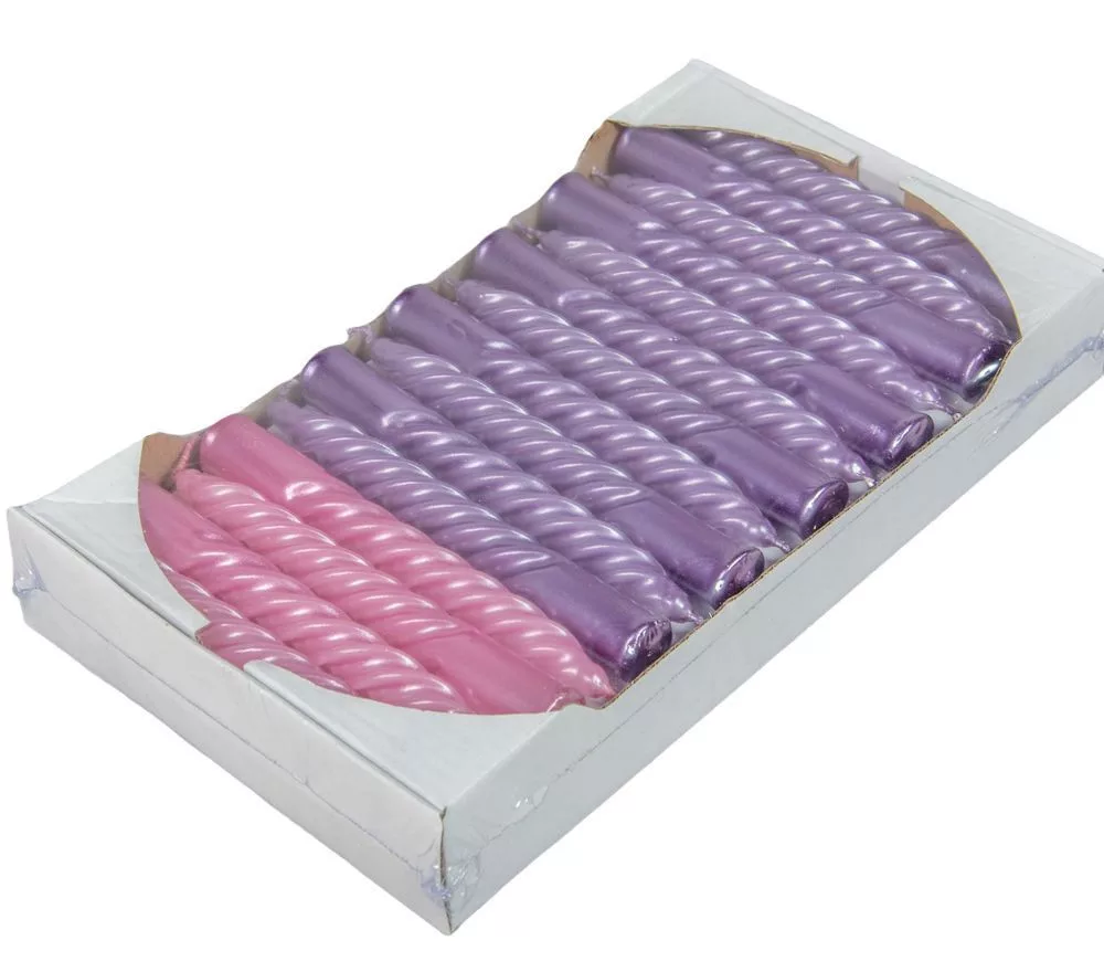 Metál kis csavart gyertya 3lila 1rózsaszín 150mm (db ár) 30db/csom