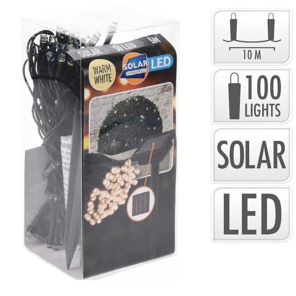 Napelemes fényfüzér 100 LED-es meleg