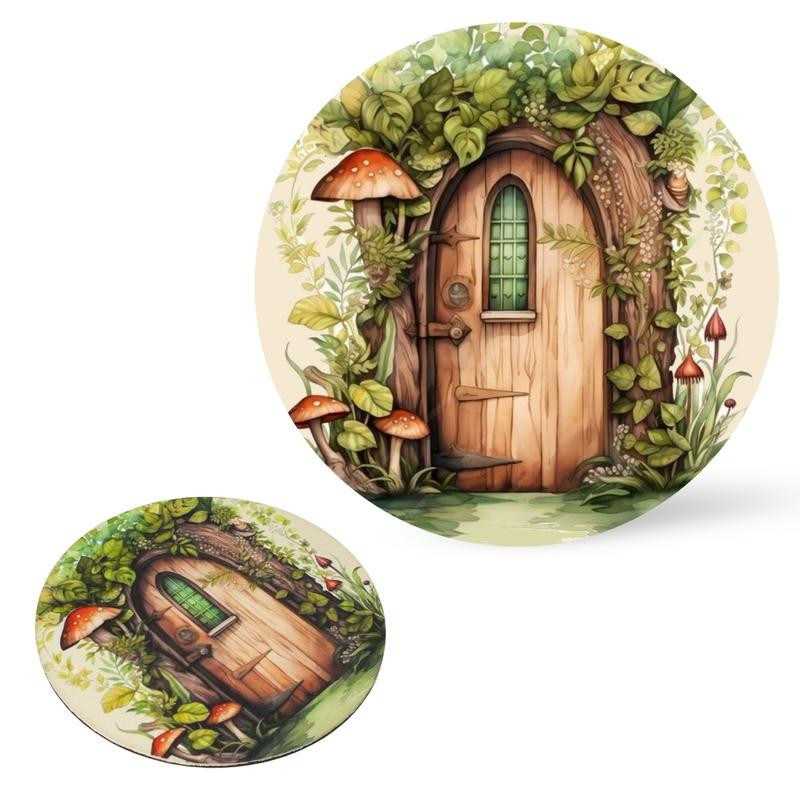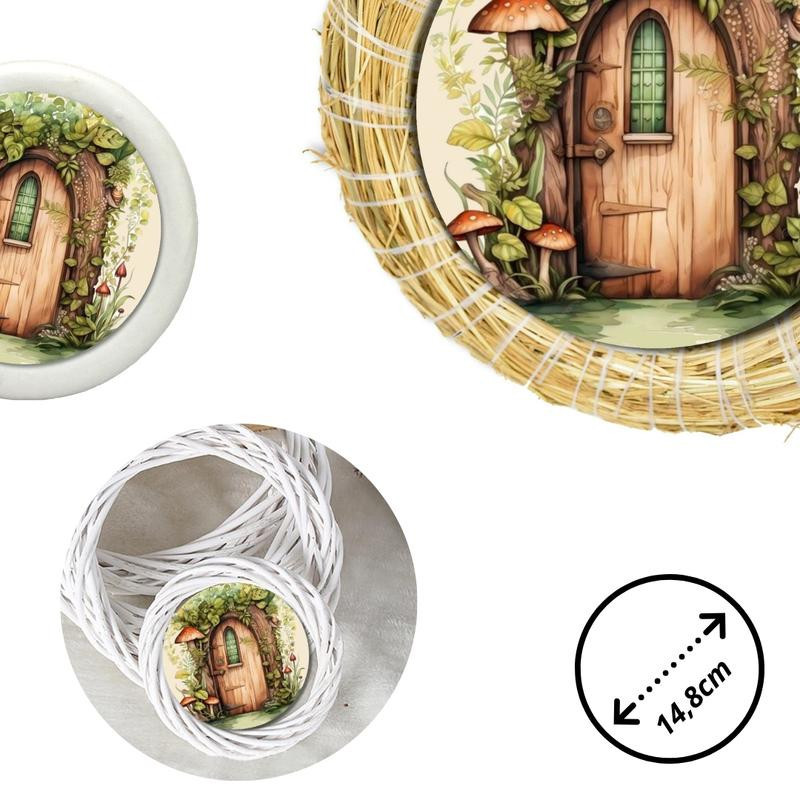 Nyomtatott fa tábla koszorú közép - Zöldablakos manóajtó 14,8