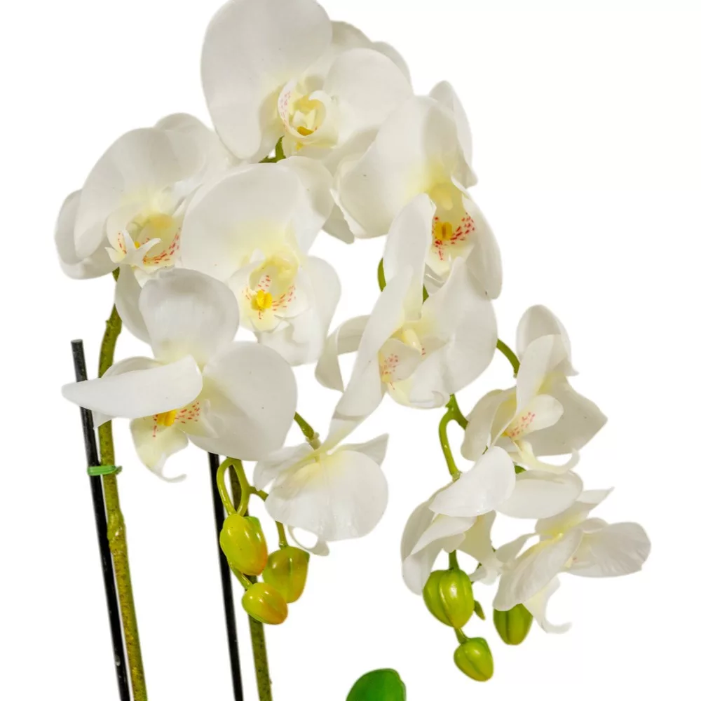 Az orchidea az elegancia és a luxus szimbóluma, ez a fehér gumi orchidea pedig segít abban, hogy ezt a prémium életérzést tartós formában élvezhesd. A selyemvirágokkal ellentétben a gumi orchidea szirmai lágy, húsos tapintásúak, ami a legmagasabb minőséget képviseli a dekorációs növények világában.