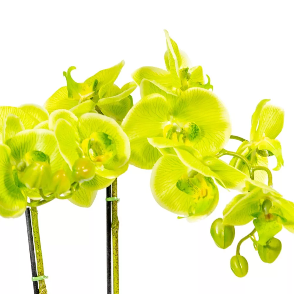 A zöld orchidea a megújulást és a természet erejét jelképezi, ez a gumi orchidea pedig segít abban, hogy ezt a friss esztétikumot tartós formában élvezhesd. A hagyományos selyemvirágokkal ellentétben a gumi orchidea szirmai lágy, húsos tapintásúak, ami a legmagasabb minőséget képviseli a dekorációs növények világában.