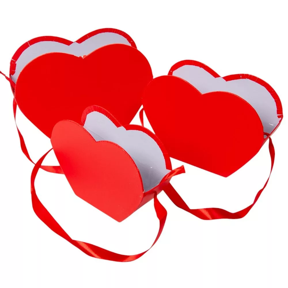 Papír Doboz Szett - Szív Alakú, Szatén Akasztóval, Piros, 3 db-os Szett