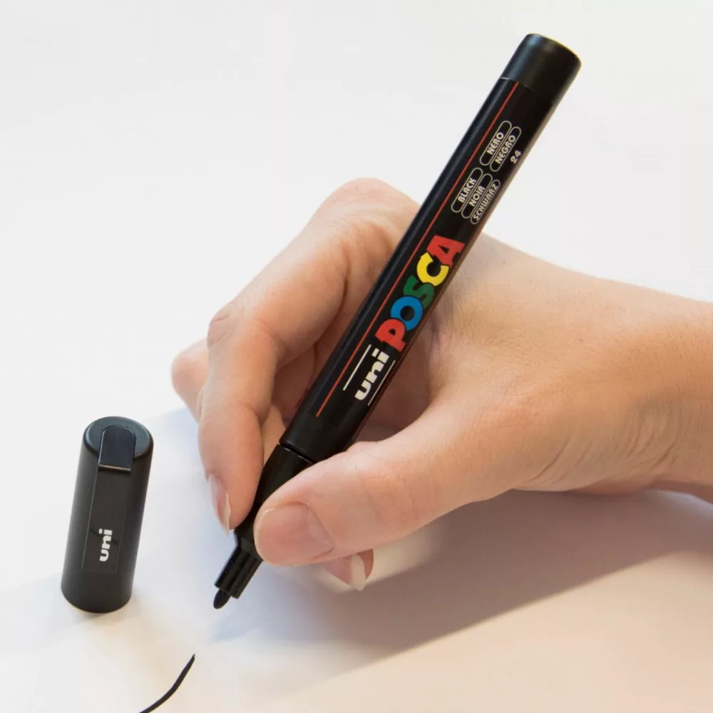 A POSCA azonnal felismerhető! Mélyfekete teste, logójának öt színes betűje és az UNI logo páratlan megjelenést kölcsönöz. A marker hegyétől függően eltérő méretű, a testforma könnyű, kényelmes fogást tesz lehetővé.