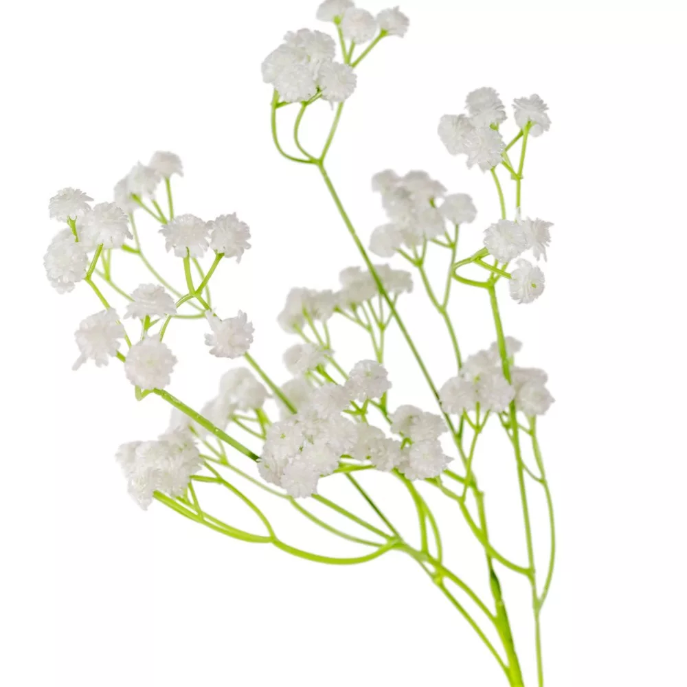 A fehér rezgő (babalehelet) a tisztaság és a szeretet szimbóluma, amely minden virágkötészeti alkotásnak lágy, felhőszerű textúrát kölcsönöz. Ez a gumírozott változat a professzionális dekoratőrök kedvence, hiszen megtartja élethű formáját és nem szórja a virágait.