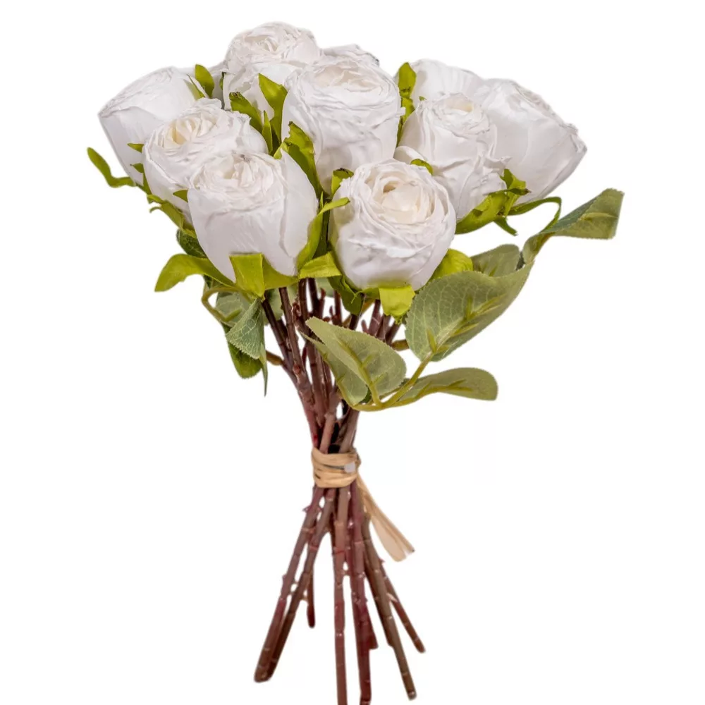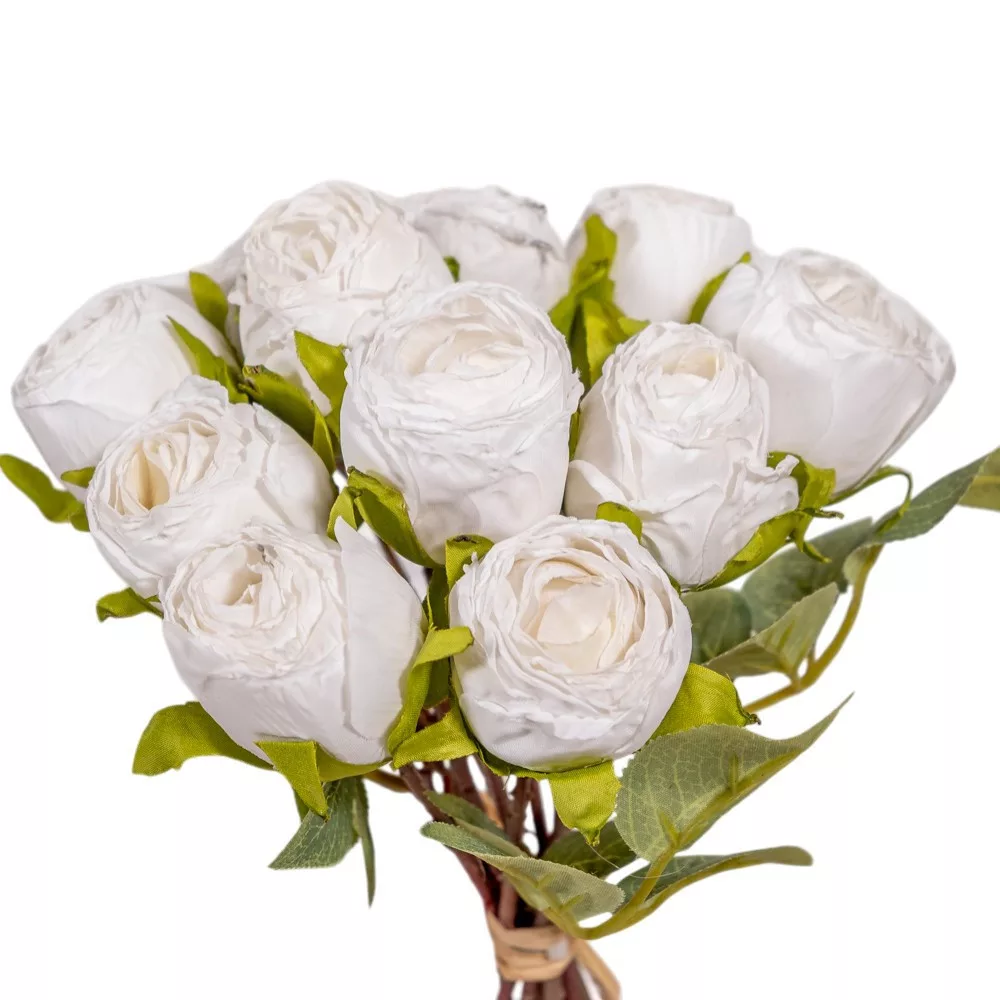 A krémszínű rózsa a tisztaságot és a megbecsülést jelképezi, ez a 10 szálas köteg pedig segít abban, hogy a legfontosabb pillanatokat stílusosan örökítsd meg. A selyemvirágok nagy előnye, hogy nem igényelnek gondozást, mégis azt a melegséget és lágyságot sugározzák, amit csak a rózsák tudnak. Ez a termék a DIY dekoratőrök és a figyelmes ajándékozók kedvence, hiszen a készre kötött forma rengeteg időt takarít meg a készülődés során.