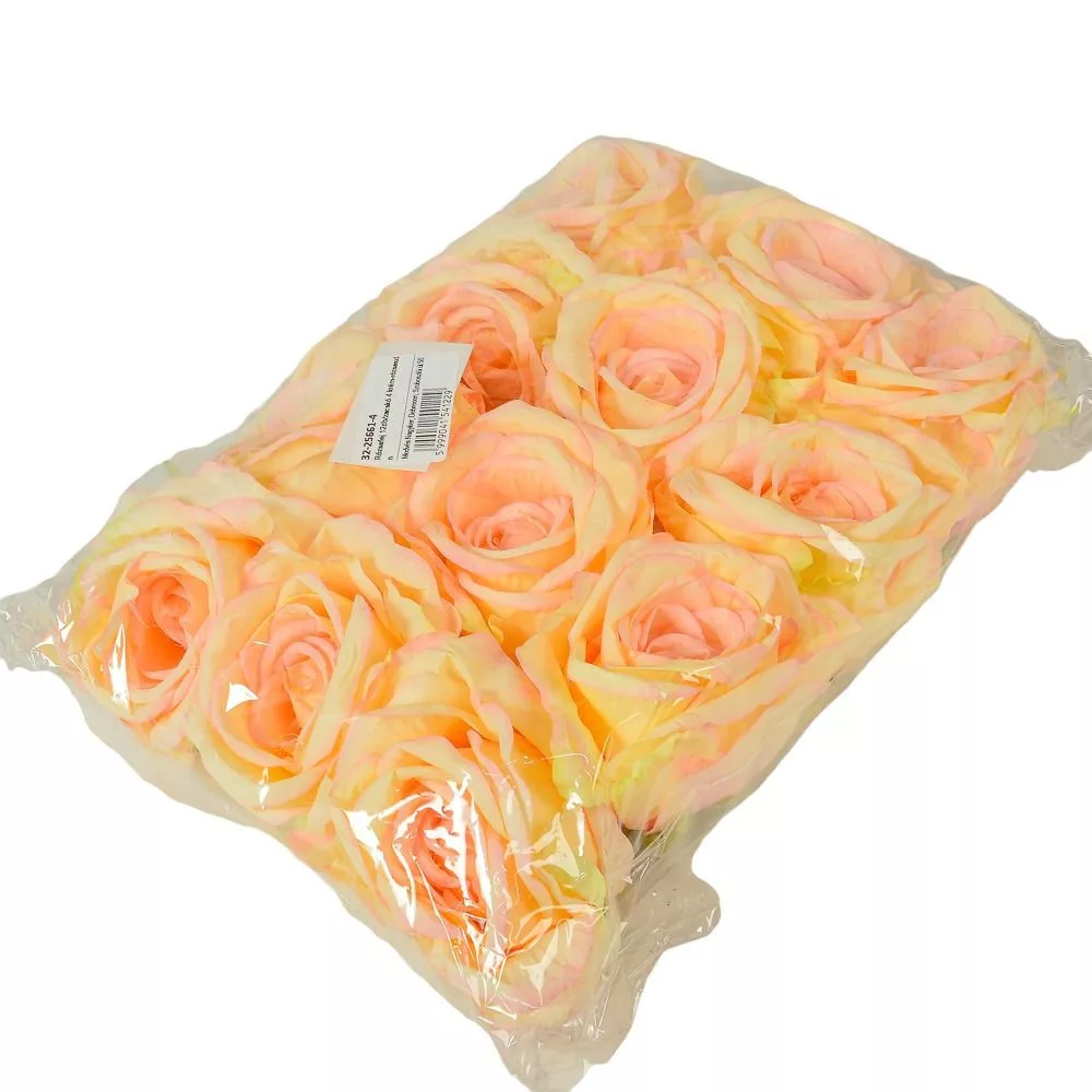 Rózsa virágfej D9cm krém-rózsaszín 4 12db/csom