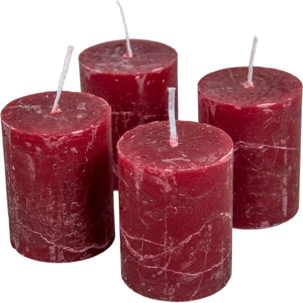 Rusztikus henger gyertya 40x50mm bordó 4db/csom (db ár)