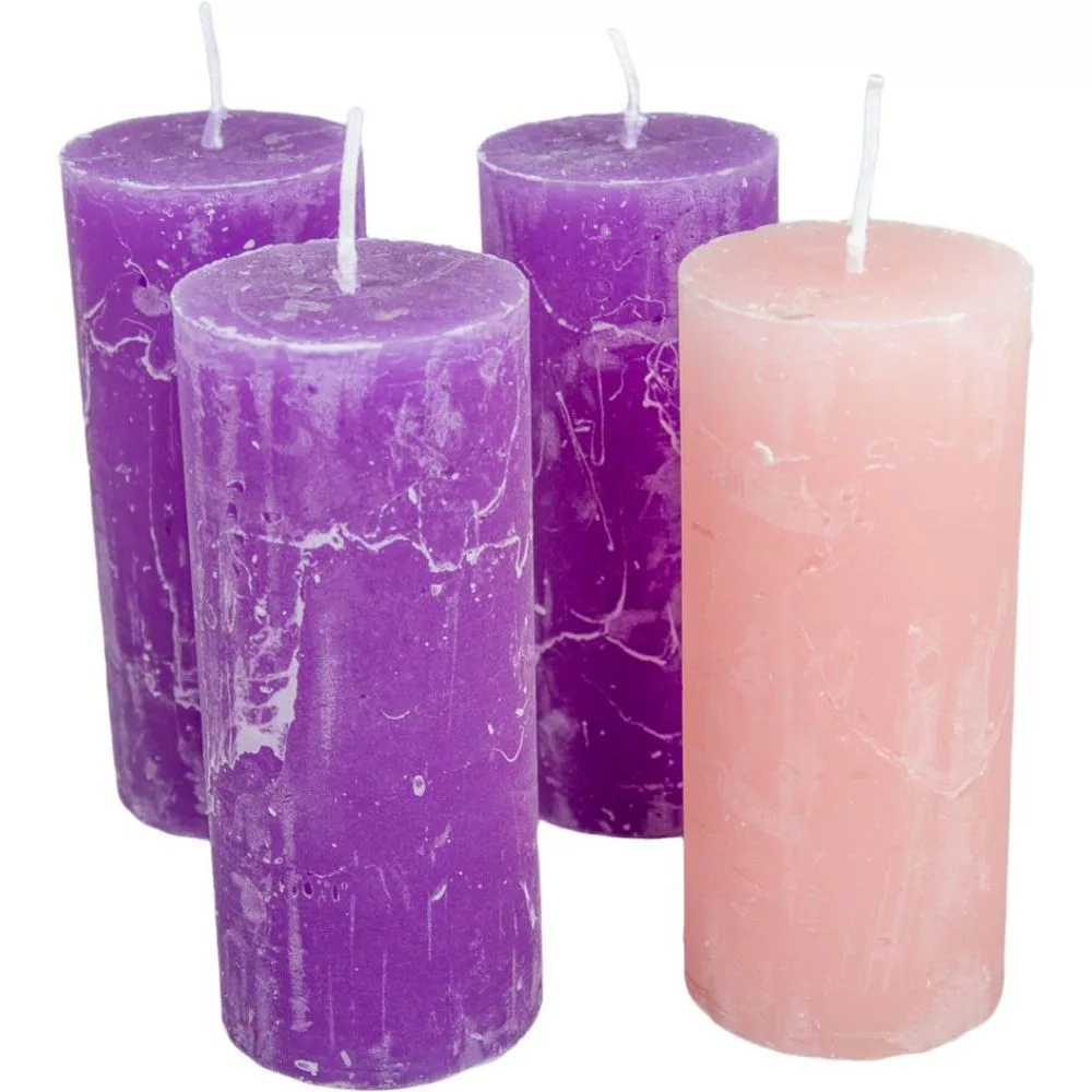 Rusztikus henger gyertya 50x120mm lila-rózsaszín 4 darabos csomagban rendelhető