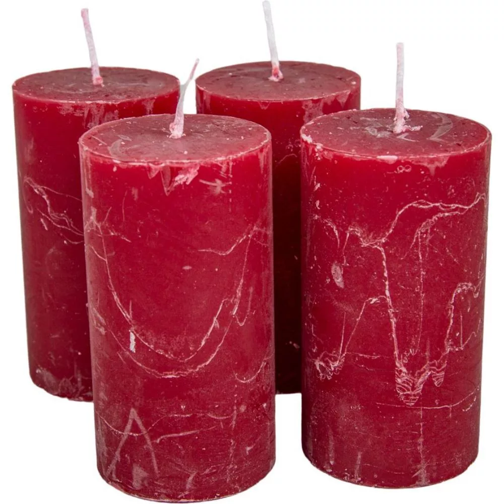 Rusztikus henger gyertya 50x90mm bordó 4db/csom (db ár)