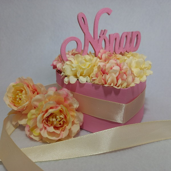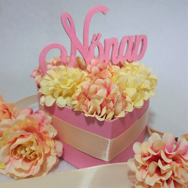 Selyemvirág box - Rózsaszín Nőnapi Szív