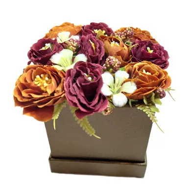 Selyemvirág box - Rozsda színű virágokkal