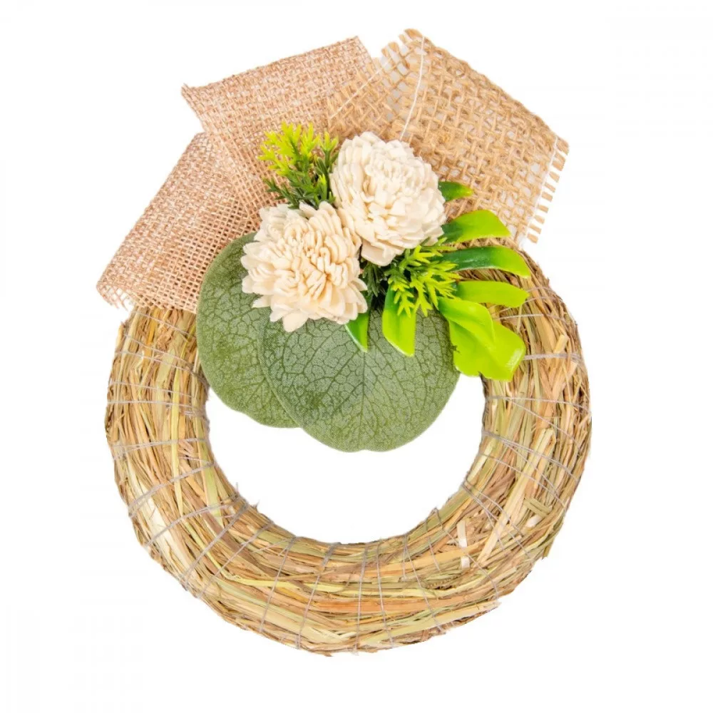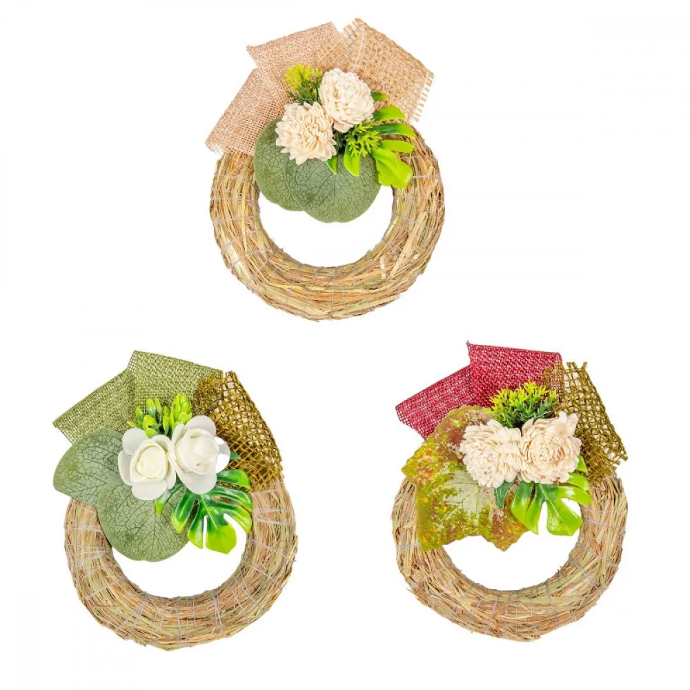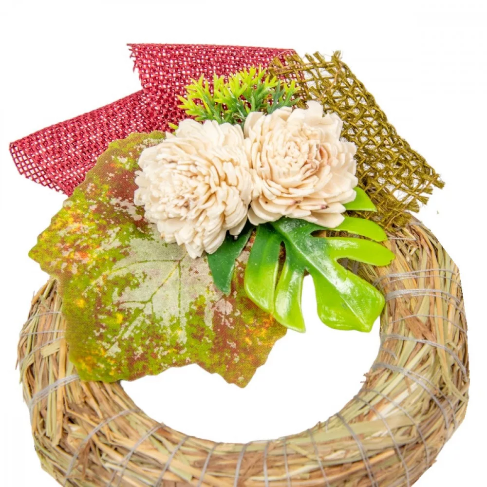 Szalma koszorú hazai szárazvirág díszítéssel 12cm
