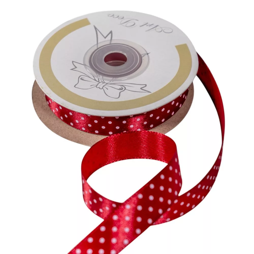 Szatén szalag pöttyös bordó 15mmx25m