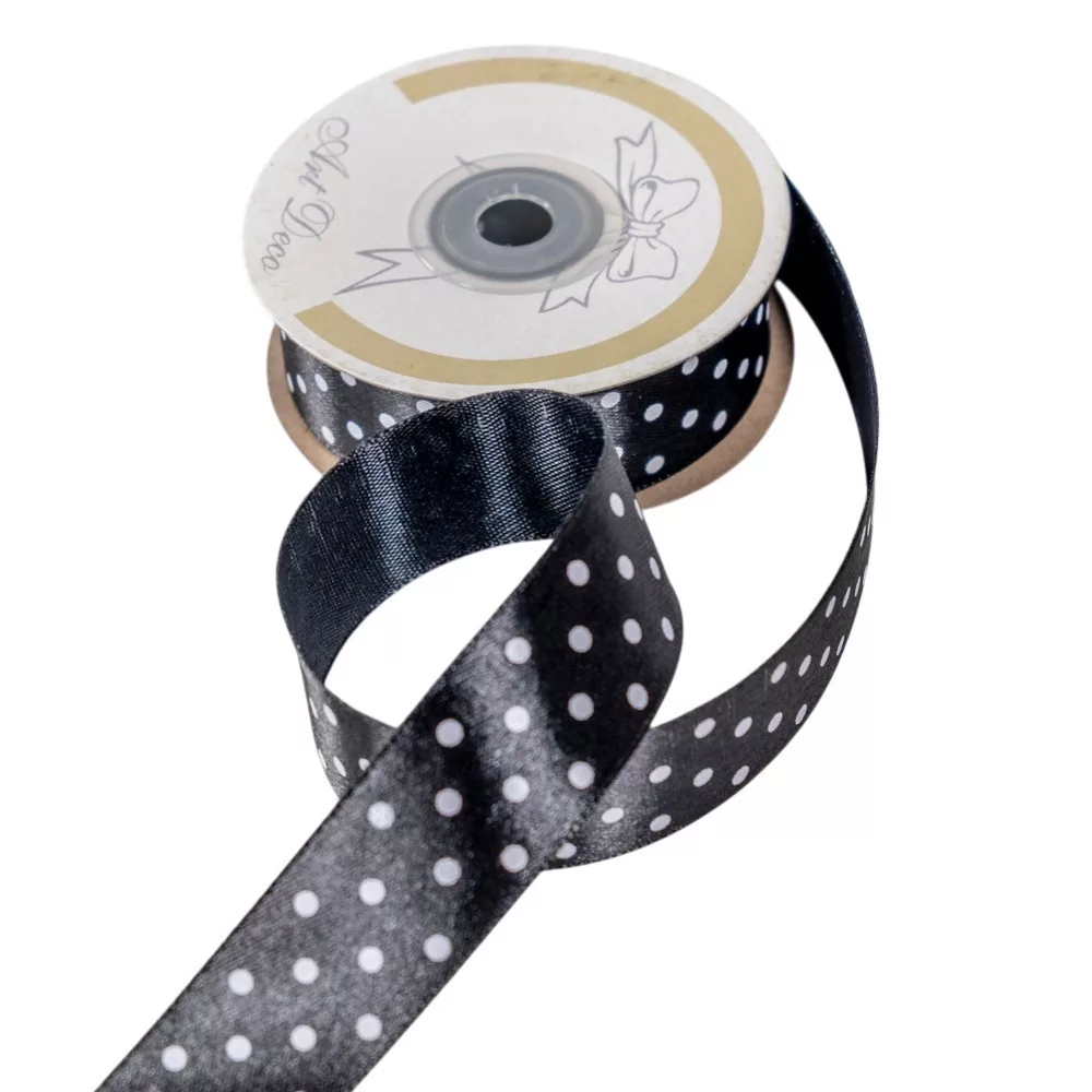 Szatén szalag pöttyös fekete 25mmx25m