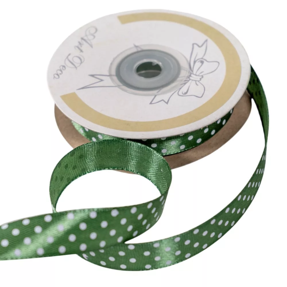Szatén szalag pöttyös olajzöld 15mmx25m
