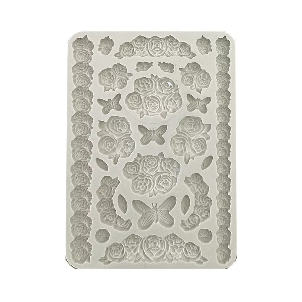 Szilikon öntőformák A5 - Shabby Rose roses and butterfly