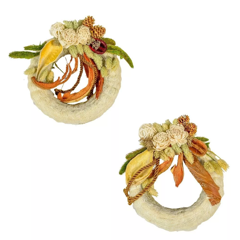 Szizálos szalma koszorú szárazvirág díszítéssel 15cm