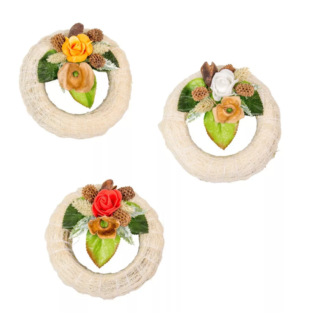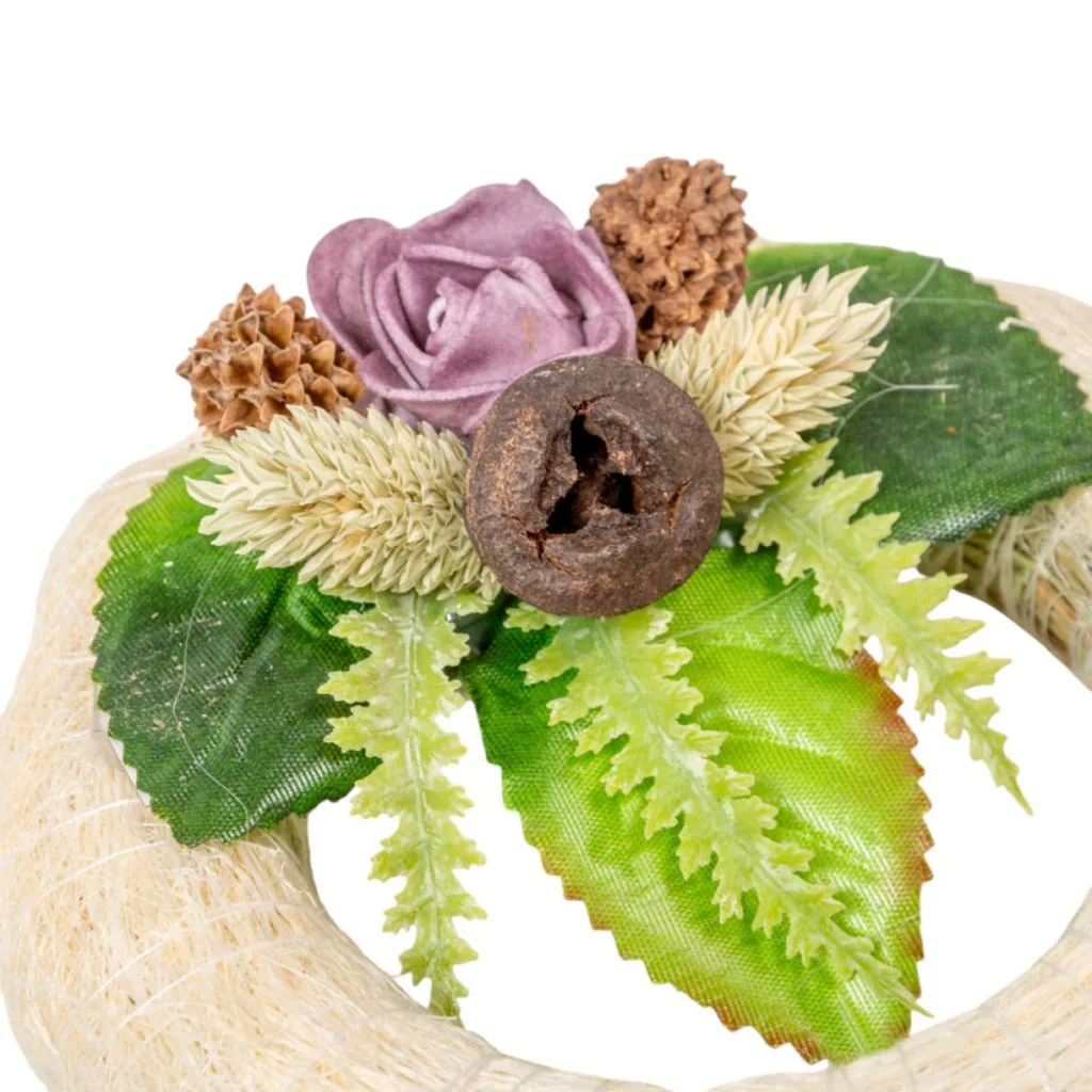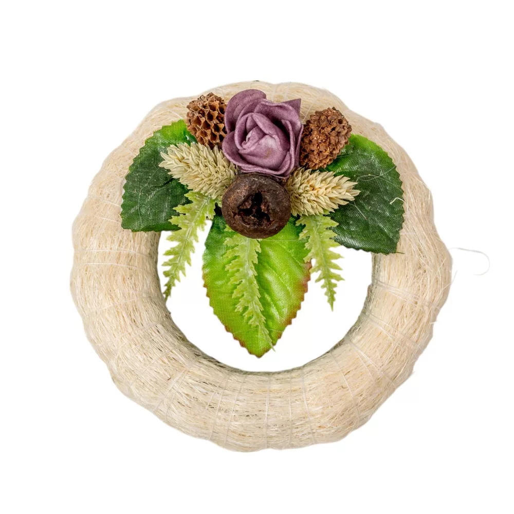 Szizálos széna koszorú szárazvirág díszítéssel fehér 12cm