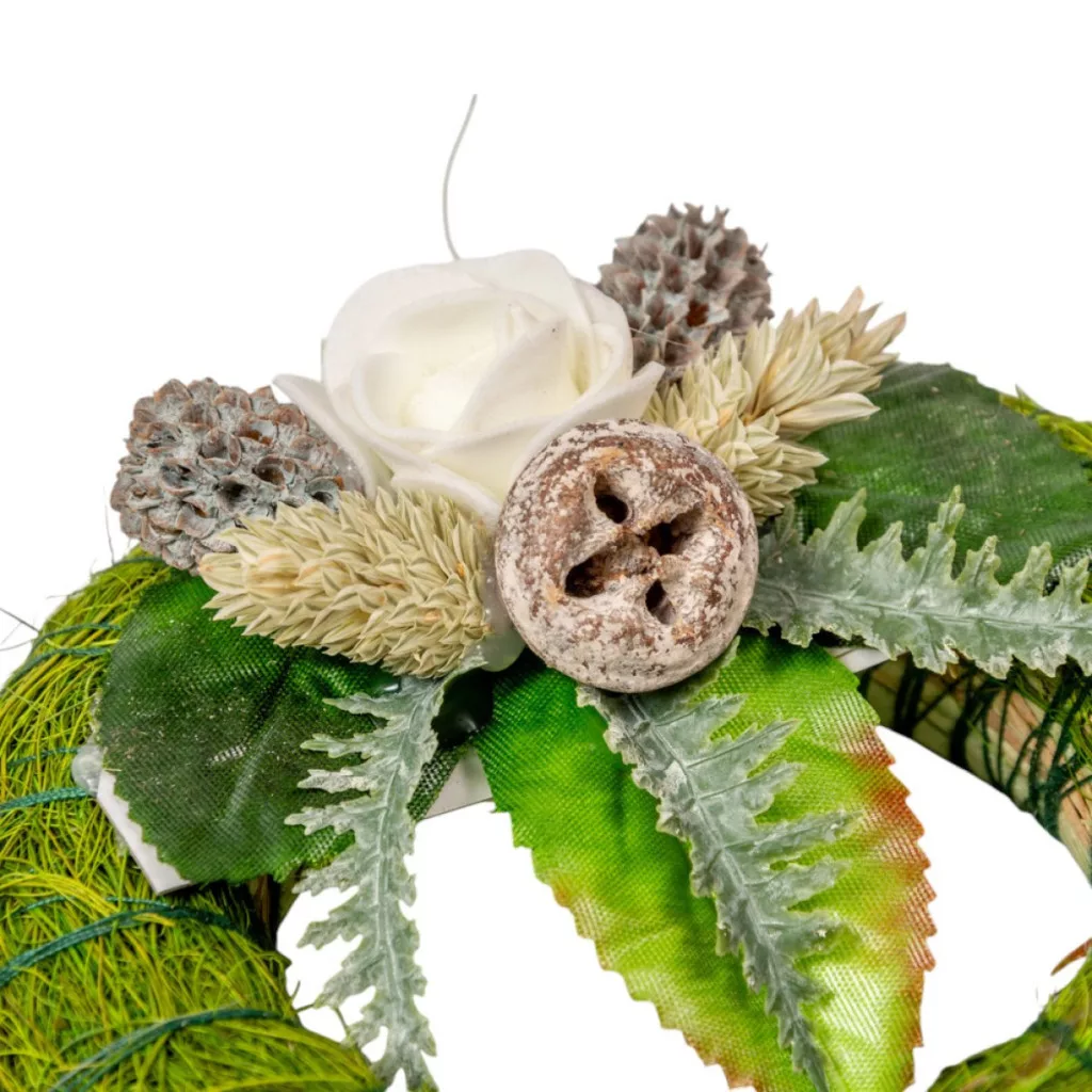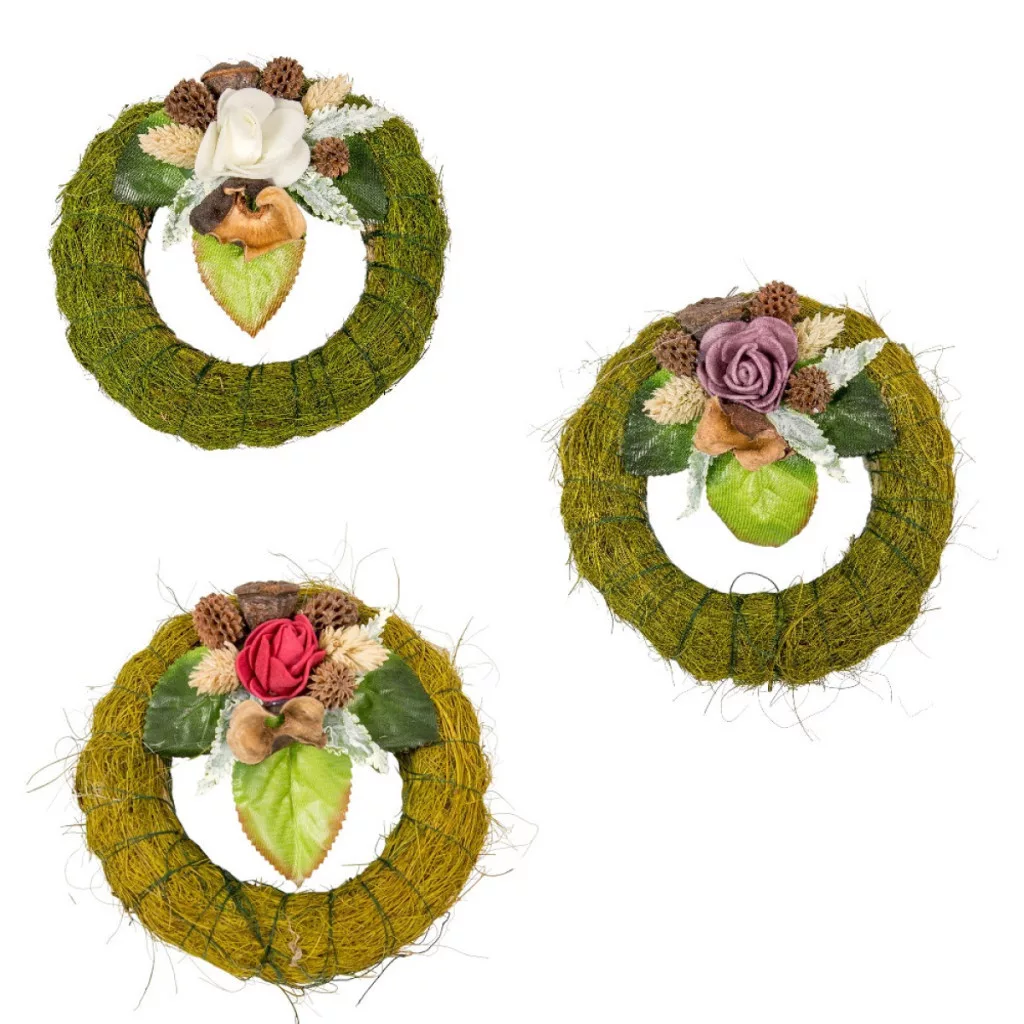 Szizálos széna koszorú szárazvirág díszítéssel zöld 12cm